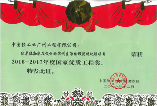 GDE Won National Excellent Project Awards for Binzhou Domestic Waste Incineration Project Edit Date:2017/03/30